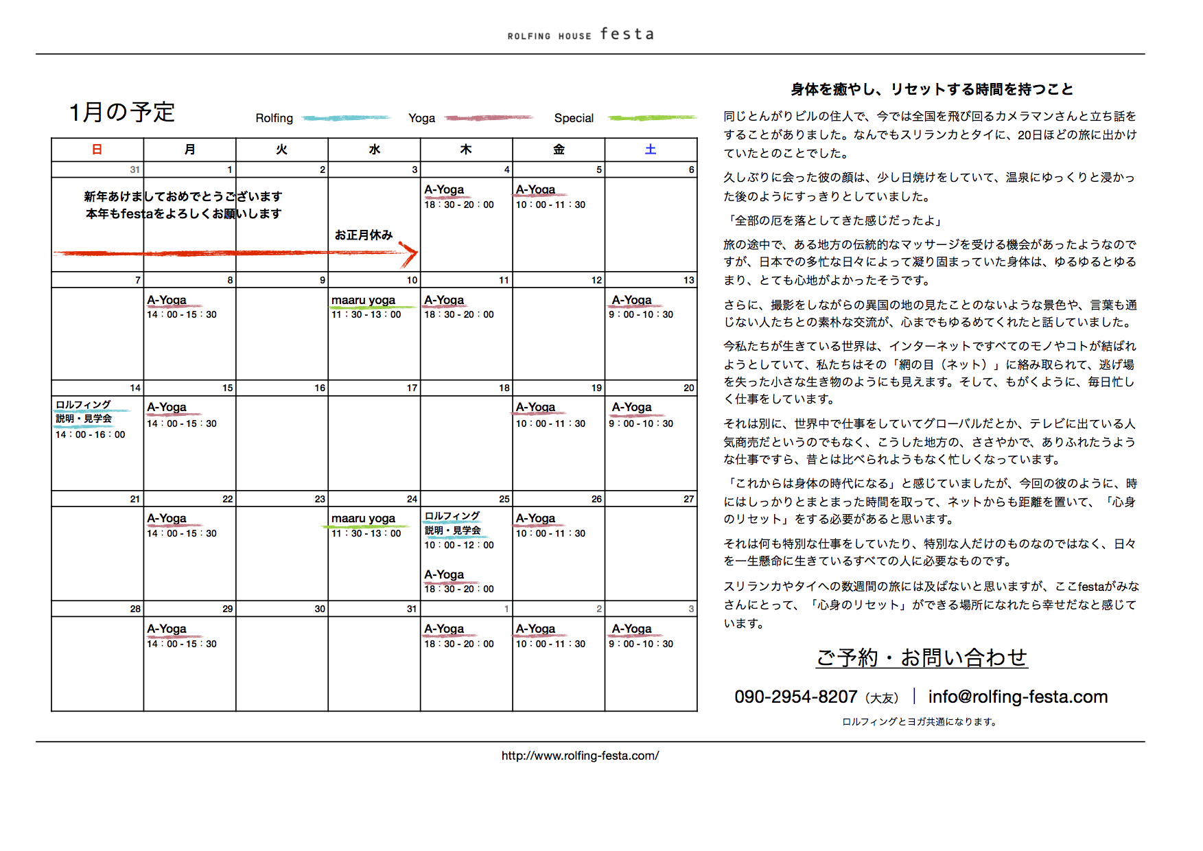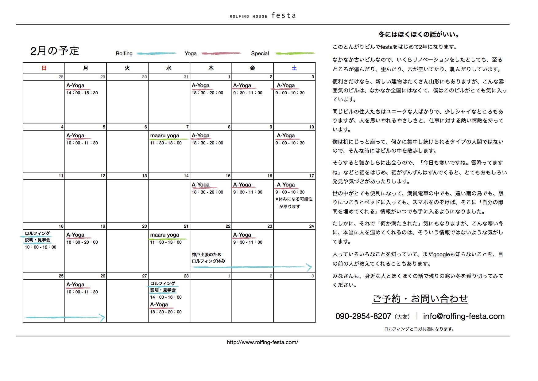 早めに来年のfestaのA-Yogaのレッスンスケジュールをお知らせしますので、ぜひぜひ来年のヨガの予定も立ててみてください。